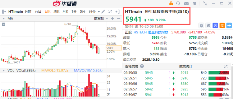 週五港股收盤大幅下跌後,貿易緊張局勢有所緩和提振市場情緒,恒指期貨反彈逾2%,恒生科技指數期貨反彈3%。特朗普表示對中國的高關稅是不可持續的,並表示和中國的關係會正常,他在兩週之內會與中國領導人見面等諸如此類的表態。