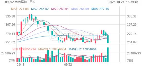 新消費概念股多數走低,泡泡瑪特跌超8%,毛戈平、鉅子生物跌超4%,布魯可、老鋪黃金、上美股份、古茗跌近4%;