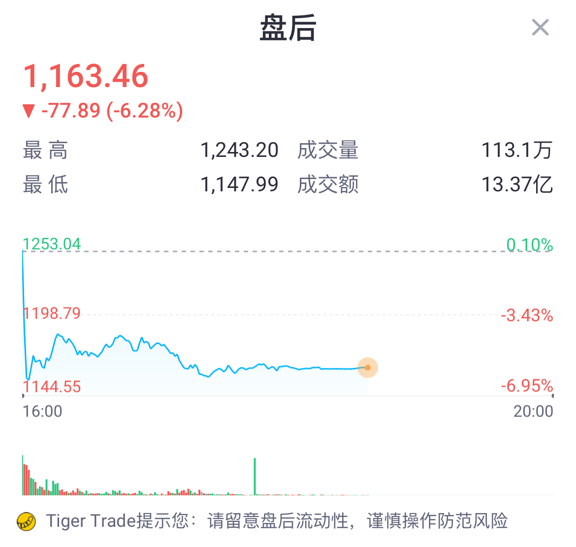 財報公佈後,小幅收漲逾0.2%的奈飛股價盤後跳水,盤後跌幅一度達7.5%。奈飛股價曾在6月30日收創歷史新高,逼近1340美元,此後震盪下行,7月下旬公佈的二季度財報未能提振股價,到本週二收盤,已較收盤紀錄高位跌去7%以上。