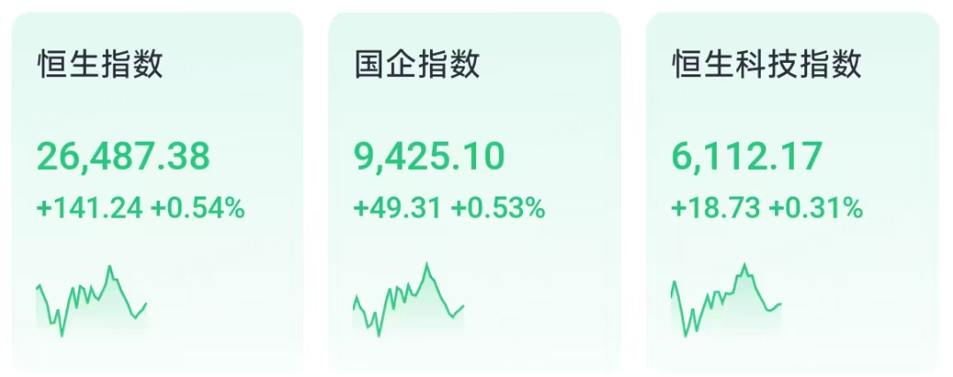 10月30日週四,中美元首會晤帶動市場情緒回暖,港股三大指數上午集體走高。截至午間收盤,恒指漲0.54%,國企指數漲0.53%,恒生科技指數漲0.31%。