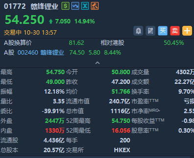 港股異動 | 有色概念股持續走強,贛鋒鋰業大漲近15%,天齊鋰業漲超10%
