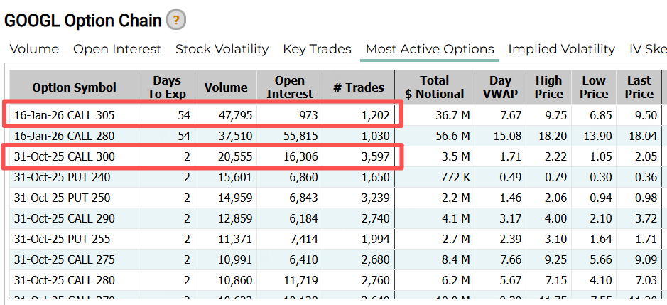 谷歌A昨日認購期權成交活躍,兩張CALL的價格達300美元,較現價仍有約10%的漲幅空間。