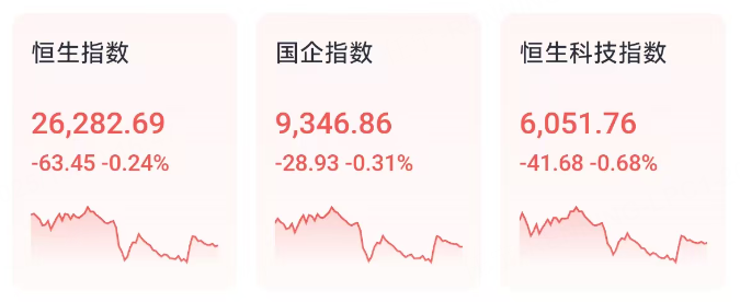 大型科技股漲跌不一。 美團-W 漲2.4%, 騰訊控股 漲0.93%, 阿里巴巴-W 漲0.64%;百度、嗶哩嗶哩跌超2%,快手跌1.71%。