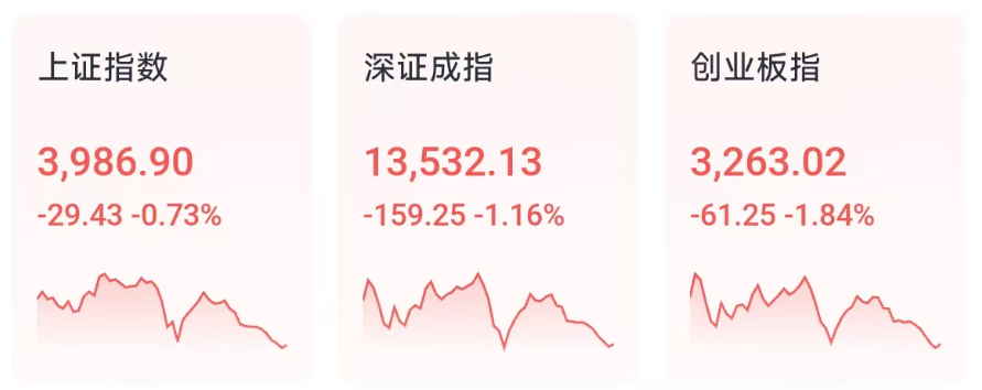 10月30日,A股震盪調整,滬指再度失守4000點,市場成交額2.42萬億,較上一個交易日放量1657億。截至收盤,滬指跌0.73%,深成指跌1.16%,創業板指跌1.84%。