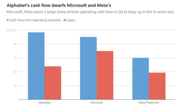 華盛資訊10月31日訊,本週微軟、谷歌、亞馬遜、 $META 四大科技巨頭髮布最新財報,創紀錄的資本支出成爲貫穿所有巨頭財報的共同主線。