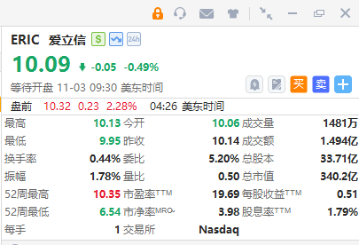 華盛資訊11月3日訊,愛立信盤前漲2%,與VodafoneZiggo合作升級荷蘭移動網絡;
