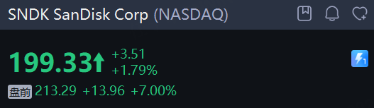 存儲概念股盤前普漲。截至發稿, SanDisk Corp 大漲超7%,開盤勢將再創新高。美光科技、希捷科技漲超3%,西部數據漲2.8%。據供應鏈消息,三星電子已率先暫停10月DDR5DRAM合約報價,引發SK海力士和美光等其他存儲原廠跟進,將導致供應鏈“斷糧”,恢復報價時間預計或將延後至11月中旬。雖然存儲四季度合約價上漲已成爲市場共識,但此前預期是10月底前就可以敲定四季度合約價。但三星遲遲不願提供合約報價,直接告訴下游客戶“無貨可賣”,導致短短一週內,DDR5現貨價格飆升25%。