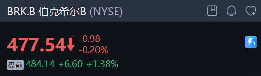 伯克希爾B 盤前漲超1%。伯克希爾第三季度營收949.72億美元,上年同期929.95億美元,市場預期915.5億美元;淨利潤307.96億美元,上年同期262.51億美元,市場預期127.3億美元;每股收益14.28美元,上年同期12.18美元,市場預期5.89美元。