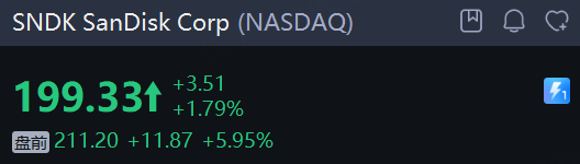 存儲概念股普漲。截至發稿, SanDisk Corp 漲約6%,開盤勢將再創新高。美光科技漲近4%,西部數據、希捷科技漲約1.6%。據供應鏈消息,三星電子已率先暫停10月DDR5DRAM合約報價,引發SK海力士和美光等其他存儲原廠跟進,將導致供應鏈“斷糧”,恢復報價時間預計或將延後至11月中旬。雖然存儲四季度合約價上漲已成爲市場共識,但此前預期是10月底前就可以敲定四季度合約價。但三星遲遲不願提供合約報價,直接告訴下游客戶“無貨可賣”,導致短短一週內,DDR5現貨價格飆升25%。