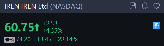 IREN Ltd 暴漲22%。IREN宣佈與微軟簽署價值97億美元的人工智能雲合同。根據協議,IREN將在五年內向微軟提供NVIDIA GB300 GPU的使用權。
