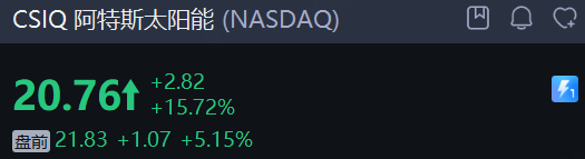 阿特斯太陽能漲3.9%,隨着各國加大對可再生能源的支持力度,光伏產業鏈公司有望從中受益。