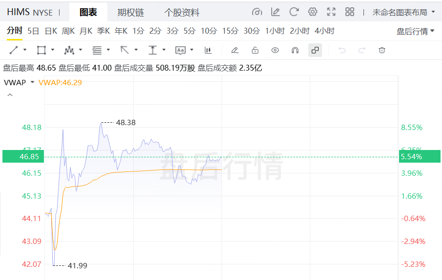 受財報影響,Hims & Hers Health盤後股價漲超5%。