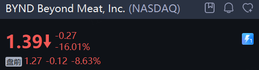 “人造肉第一股”Beyond Meat盤前續跌超8%。消息面上,Beyond Meat宣佈將延後至11月11日股市收市後公佈第三季財報,主要因爲公司需要更多時間來計算與部分長期資產相關的重大非現金減損費用。