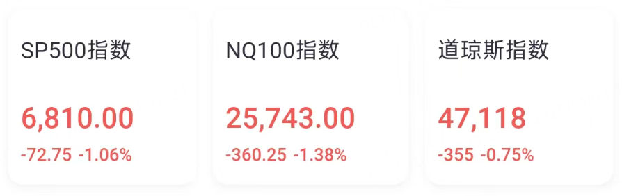 同時, 英偉達 盤前跌1.9%,谷歌、亞馬遜跌1.6%,Meta跌1.4%,蘋果、微軟跌0.8%。