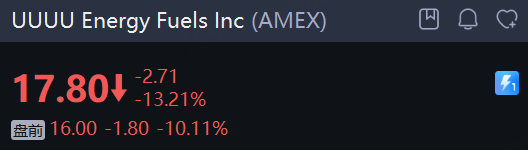 稀土公司 Energy Fuels Inc 大跌超10%,Q3淨虧損爲1673.6萬美元,高於去年同期的1206萬美元。