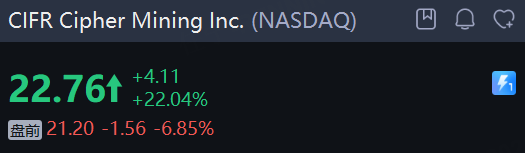 加密貨幣概念股盤前集體走弱, Cipher Mining Inc. 跌超6%,BMNR跌超5%,IREN、MARA、Robinhood、Coinbase、Strategy跌超3%。比特幣日內跌超2.5%,跌破10.4萬美元關口。