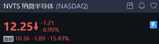 納微半導體 盤前大跌超15%。公司三季度營收爲 1011 萬美元,略高於分析師預期的 1001 萬美元。公司當季 經調整後每股虧損 0.05 美元,符合市場預期。不過,總營收同比大幅下降,去年同期爲 2170 萬美元。