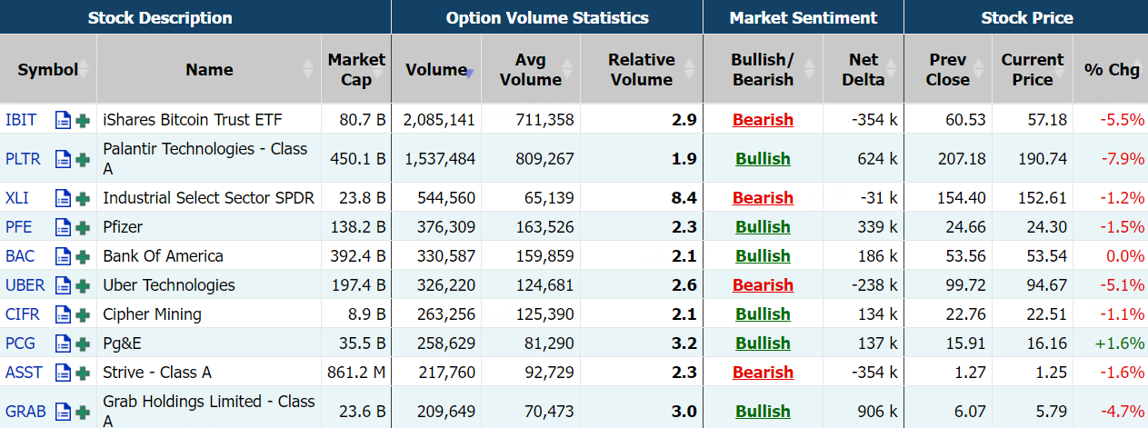 週二,期權市場總成交量5778.93萬張合約,高於90日均量;英偉達、Palantir當日期權分別成交236.5萬張、156.39萬張,期權顯示多空分歧巨大;IBIT當日期權成交逾200萬張,多張於本週五到期的Put單翻倍大漲>>