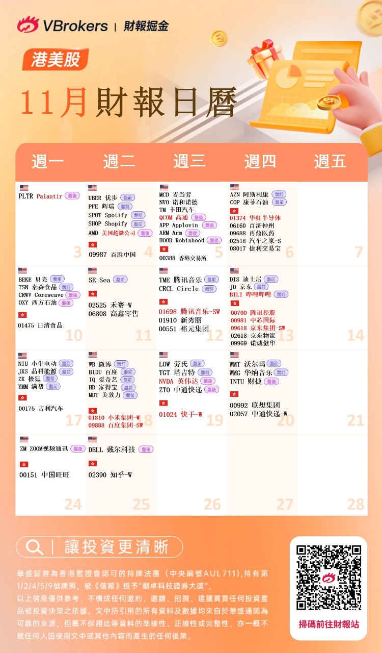 港美股財報季持續火熱!11月已至,本月有哪些重磅財報不容錯過?
