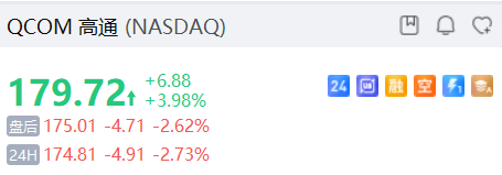 11月6日,美股夜盤時段,高通跌超2%,第四財季營收同比增長10%,減值計提致虧損31億美元。