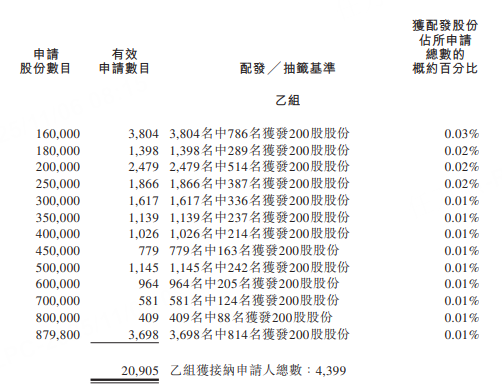 生物醫藥公司旺山旺水-B(02630)公佈招股結果,香港公開發售接獲6,238.42倍認購,一手(200股)中籤率1.68%。國際發售錄得16.87倍認購。