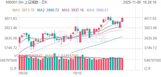 11月6日,A股三大指數今日集體上漲,滬指重回4000點;截至收盤,滬指漲0.97%報4004點,深證成指漲1.73%,創業板指漲1.84%,科創50指數漲3.34%。全市場成交額2.08萬億元,較前一交易日增量1816億元,近2900股上漲。