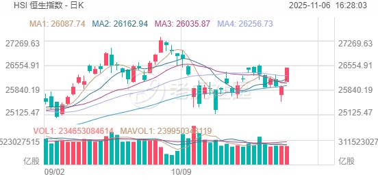 11月6日,港股三大指數呈現高開高走行情,市場做多情緒回穩,一舉收復月內全部跌幅。截止收盤,恒生科技指數尾盤一度漲至3%,最終收漲2.74%,恒生指數、國企指數分別上漲2.12%及2.1%,恒指上揚達550點報26485點。
