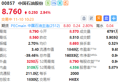 華盛資訊11月10日訊,港股石油股盤中持續上揚,截至發稿,中國石油股份漲近3%,中國石油化工股份、中國海洋石油漲超2%。