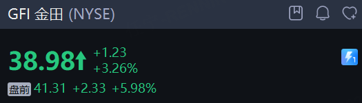 現貨黃金大漲2%,貴金屬股盤前走高。 金田 漲近6%,哈莫尼黃金漲超5%,金羅斯黃金漲3.6%。