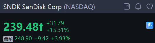 數據存儲概念普漲,美光、希捷科技漲超4%,SanDisk Corp、 西部數據 漲近4%,開盤均有望再創新高。有媒體報道稱,SanDisk大幅上調NAND閃存合約價格,漲幅高達50%。同時,