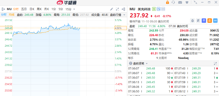 近兩個月股價翻了5倍的存儲芯片廠商閃迪(SanDisk)週一盤前續漲2%,日內有望衝擊250美元的歷史新高。消息面上,閃迪將閃存合同價上調50%,疊加國際大行高盛“翻倍提高目標價”的刺激發酵,進一步炒熱市場高昂的情緒。在閃迪的帶動下,希捷科技、美光科技盤前集體漲超4%,均有望在今天衝擊歷史新高。