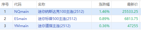 市場樂觀預期美國政府停擺即將結束!週一美股三大指數期貨盤前集體走高,截至發稿,納指期貨 $NQmain 漲1.46%,標普500期貨 $ESmain 漲0.89%,道指期貨 $YMmain 漲0.36%。