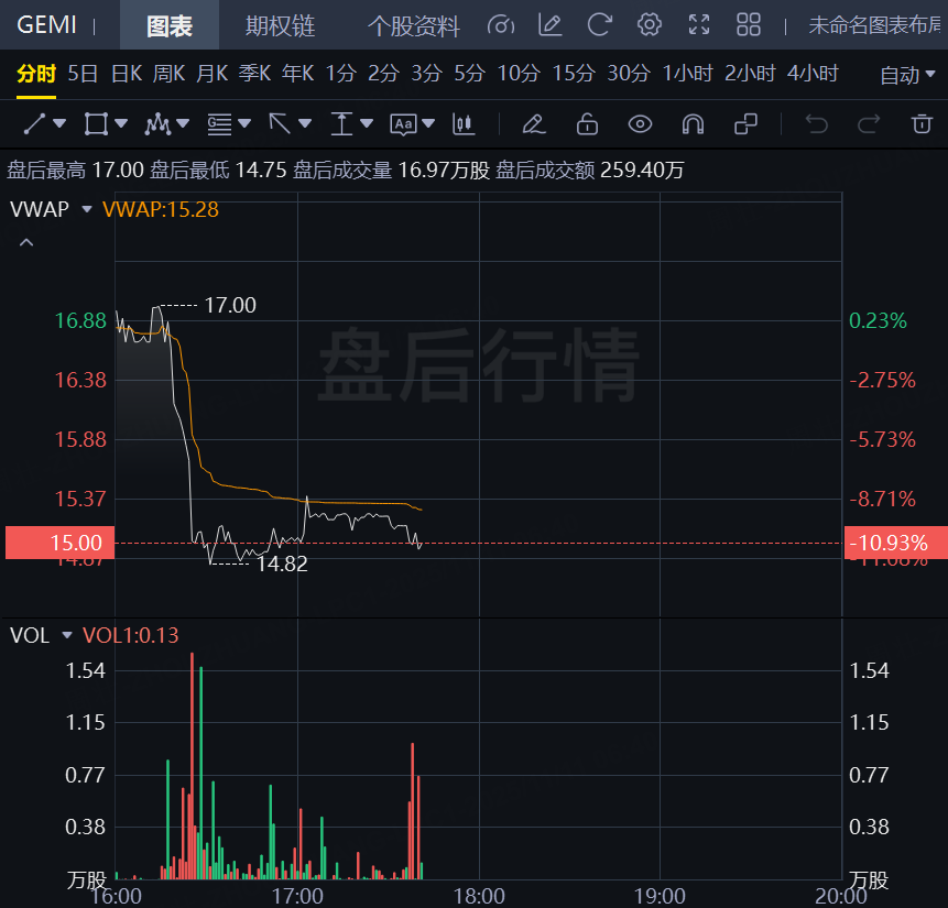11月11日,Gemini Space Station盤後大跌近11%!此前公佈第三季度財報,淨虧損較去年同期收窄,得益於強勁交易量推動營收超預期增長。