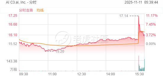 11月11日,C3.ai盤中直線拉昇,漲幅一度超10%!三位消息人士表示,人工智能軟件提供商C3.ai在創始人Thomas Siebel因健康問題辭去CEO職務後,正在探索潛在的出售方案及其他選項。