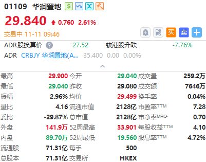 華盛資訊11月11日訊,港股內房股延續漲勢,截至發稿,龍湖集團漲超3%,華潤置地漲超2%,融創中國漲超1%。