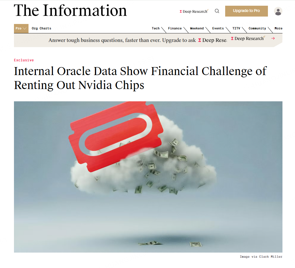 值得一提的是,更早的10月7日,科技媒體The Information 在獨家報道《Internal Oracle Data Show Financial Challenge of Renting Out Nvidia Chips》中表示:甲骨文Oracle內部數據顯示,出租英偉達芯片面臨財務挑戰,質疑其毛利率過低。