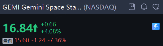 Gemini Space Station Inc 跌超7%。三季度淨收入 4977.5 萬美元,同比增長 104.4%,環比增長 51.8%,高於市場預期的 4684 萬美元;但在收入大幅增長的同時,淨利潤卻依然爲負,虧損也幅度同比增長 76.9% 至 1.595 億美元,每股收益 -6.67 美元,大幅高於 -0.767 美元的市場預期。