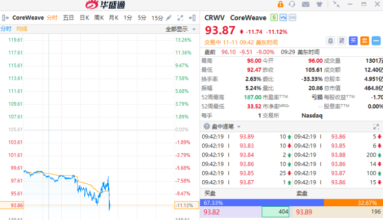 AI雲計算概念集體走弱,CoreWeave績後重挫11%,Nebius $NBIS 績後跌超3%,甲骨文跌跌超2%。