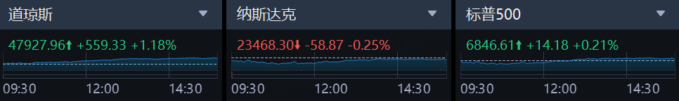 美東時間週二,美股三大股指收盤漲跌不一,市場預計美國政府停擺即將結束,道指創下歷史收盤新高;與此同時,英偉達等人工智能(AI)概念股則因估值過高擔憂而集體下挫。截至收盤,道指漲559.33點,漲幅爲1.18%,報47927.96點;納指跌58.87點,跌幅爲0.25%,報23468.30點;標普500指數漲14.18點,漲幅爲0.21%,報6846.61點。