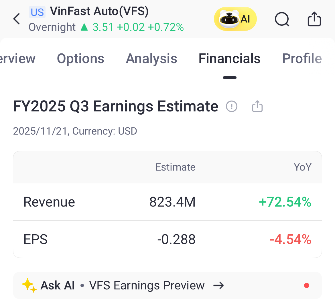 VinFast Auto將於2025年11月21日(美股盤前)發佈最新季度財報,市場關注點集中在營收增速延續與虧損收窄路徑上。