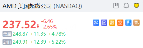 美國超微公司隔夜跌超2%,但盤後反彈,漲幅接近5%。當天期權合約成交64.54萬張。其中,11月14日到期的250美元的行權看漲期權交易量特別高,共有53,384份合約交易。 $AMD 20251114 250.0 CALL$