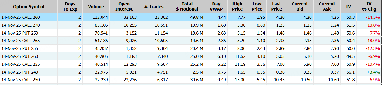 美國超微公司隔夜收漲9%,期權合約成交153.87萬張。11月14日到期的260美元的行權看漲期權交易量特別高,共有112,044份合約交易。 $AMD 20251114 260.0 CALL$