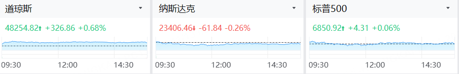 美東時間週三,美股三大指數漲跌不一。截至收盤,道指收漲0.68%續創收盤新高,納指跌0.26%,標普500指數漲0.06%。