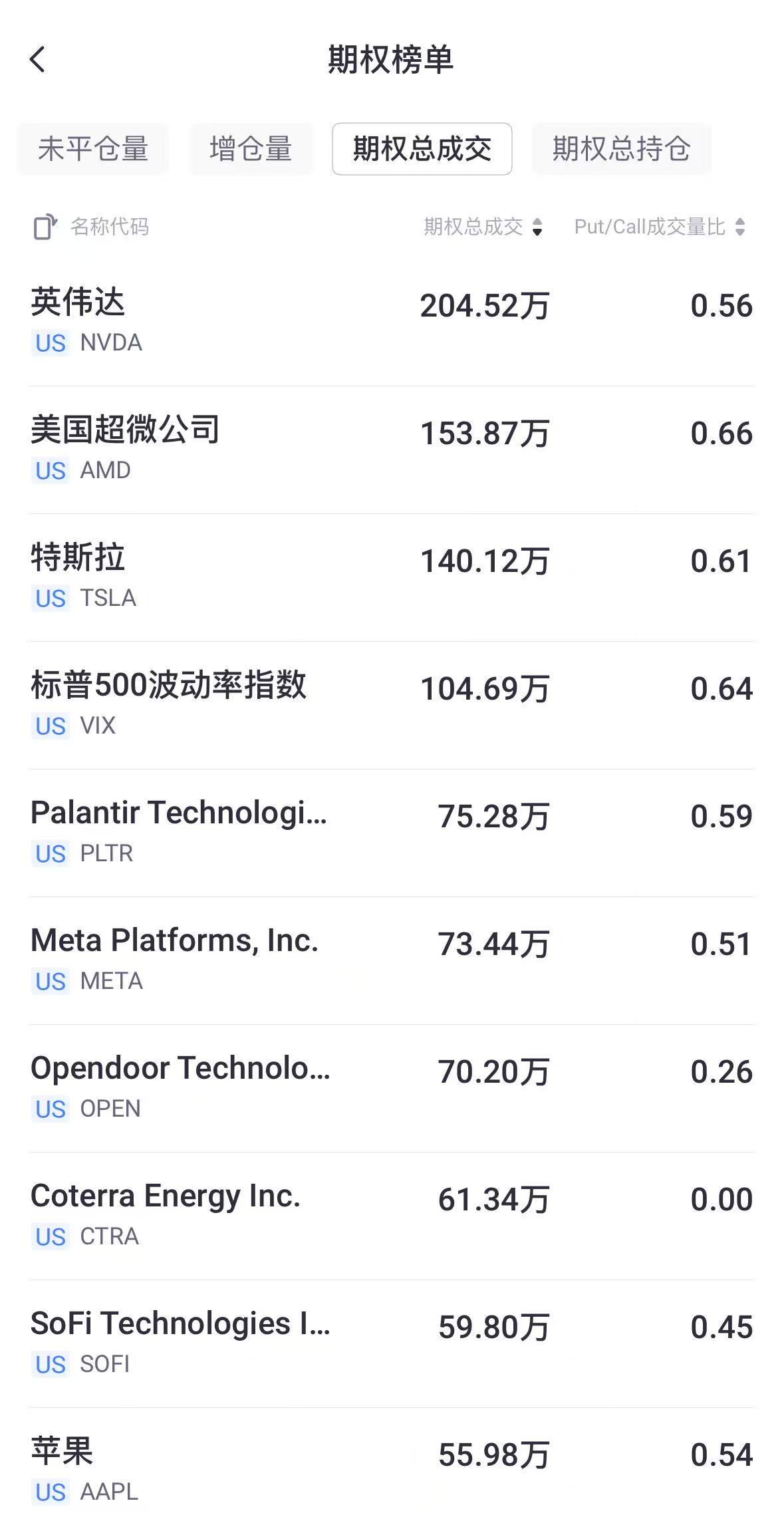 二、期權成交總量TOP10