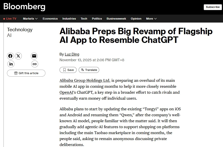 消息面上,彭博稱阿里巴巴正準備在未來幾個月對其主要移動AI應用程序進行全面改造,使其更接近OpenAI的ChatGPT。阿里巴巴計劃首先將移動平臺上的“通義”App更名爲“Qwen”。未來幾個月內,阿里巴巴將逐步在包括淘寶網在內的多個平臺上添加智能代理 AI 功能,以支持購物體驗。