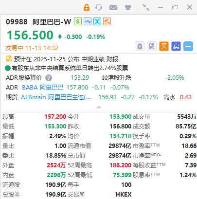 華盛資訊11月13日訊,港股阿里巴巴-W跌幅收窄至0.1%,股價一度轉漲,美股夜盤漲近2%;有消息稱公司準備對其旗艦AI應用進行改版,使其更像ChatGPT。