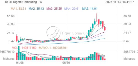 自那以後,股價大幅回落。週三 Rigetti 股價下跌9.87%,至28.3 美元。同行公司 D-Wave Quantum Inc. (QBTS) 和 IONQ Inc. (IONQ) 也分別下跌 8.93% 和 6.82%。