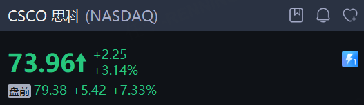 思科 大漲超7%,開盤後勢創新高。思科第一財季營收同比增長8%至148.8億美元,非GAAP每股收益同比增長10%至1美元,均超出指引上限及市場預期。期內AI基礎設施訂單達13億美元,較上季度8億美元大幅增長62.5%。該公司預計第二財季收入將介於150億至152億美元之間,超出市場預期的146億至147億美元,同時上調全年收入指引至602億至610億美元。
