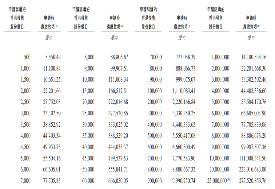 乙組門檻爲50萬股,申購所需資金約555.04萬港元。