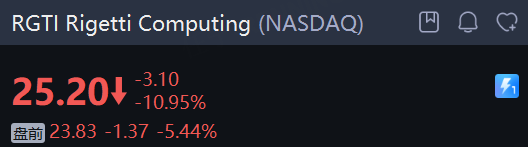 量子計算概念股盤前普跌,Rigetti Computing跌超5%,Quantum Computing、SEALSQ跌超3%,IONQ跌2%。